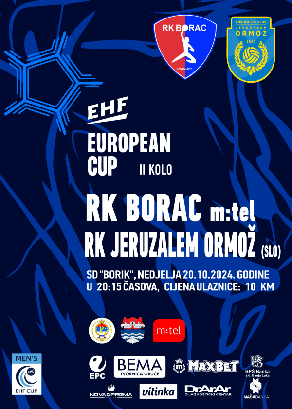 Независни универзитет Бањалука обезбиједио је својим студентима улазнице за утакмицу 2. кола ЕХФ купа РК Борац – РК Јерузалем Ормож (СЛО), која ће се играти у недјељу, 20.10.2024. године у 20:15. Улазнице су доступне у студентској служби и кантини. Подржимо наш најтрофејнији спортски клуб заједно! АЈ БОРАЦ!