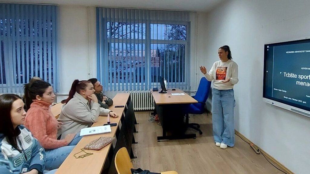 Студентима прве године пословне психологије и менаџмента представила је рад предиспитне активности „Тржиште спорта и менаџери“. Више