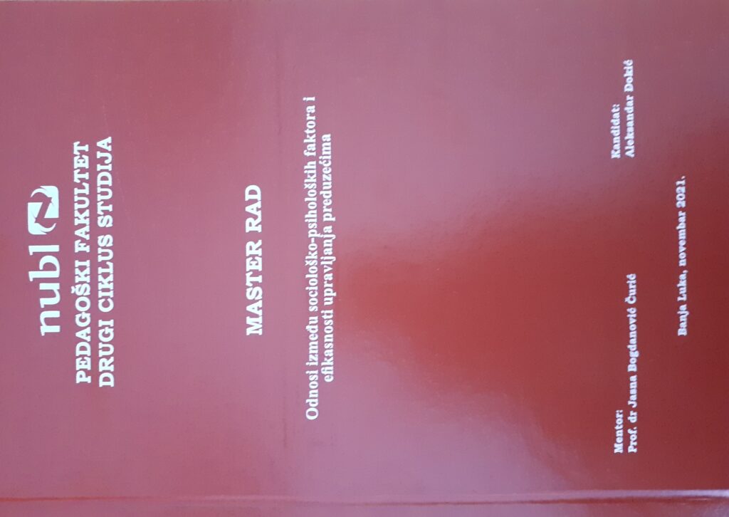 Tema master rada bila je „Odnosi između sociološko-psiholoških faktora i efikasnost upravljanja preduzećima“. Mentor master rada Aleksandra Đokića bila je prof. dr Jasna Bogdanović Čurić .